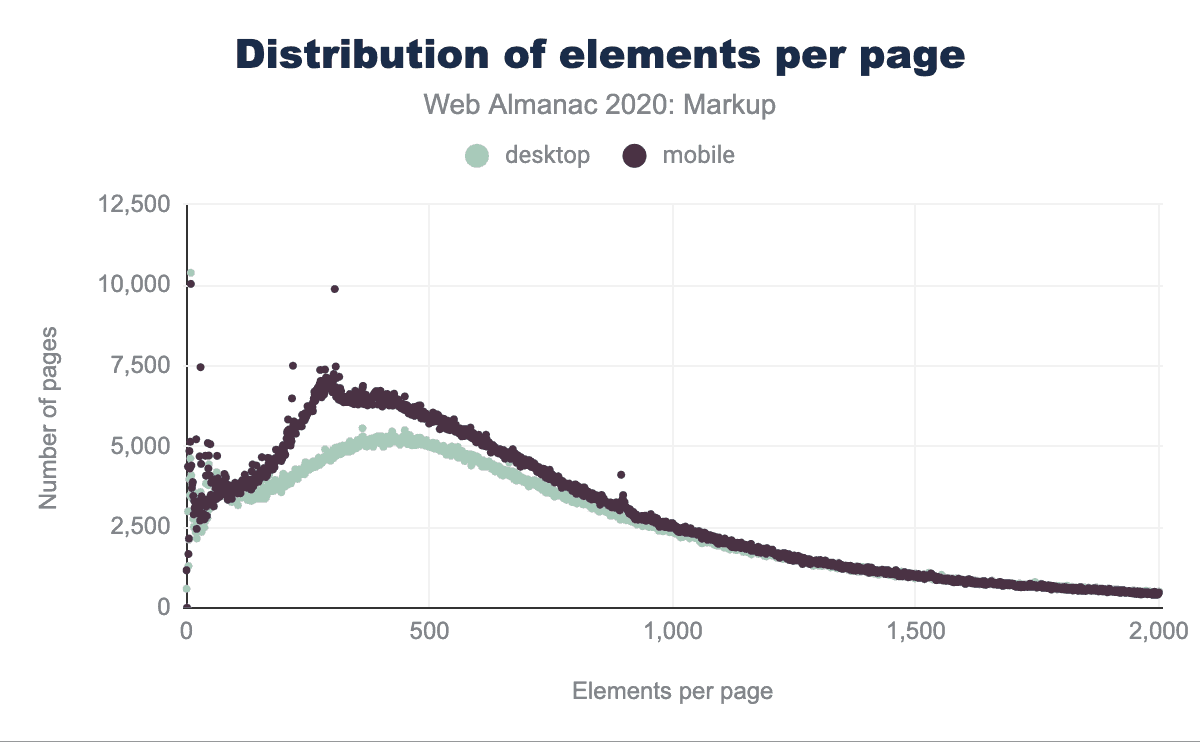 ページあたりの要素とページあたりの要素タイプはほぼ変わらず、2019年と比較して、私たちのHTMLの書き方に大きな変化はないことを示しています。このような変化は、顕在化するまでに時間を要する可能性があります。