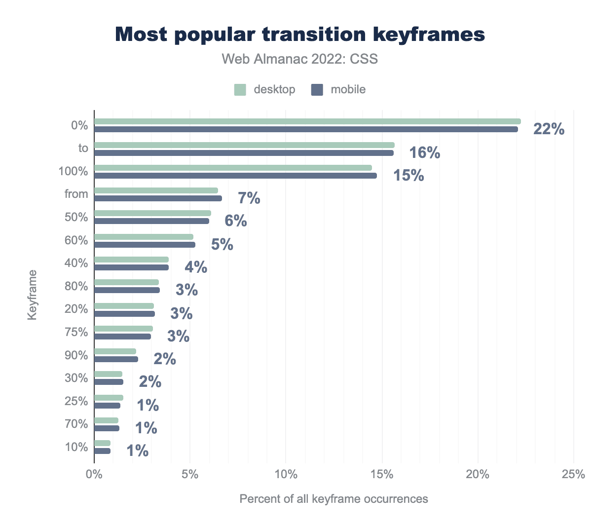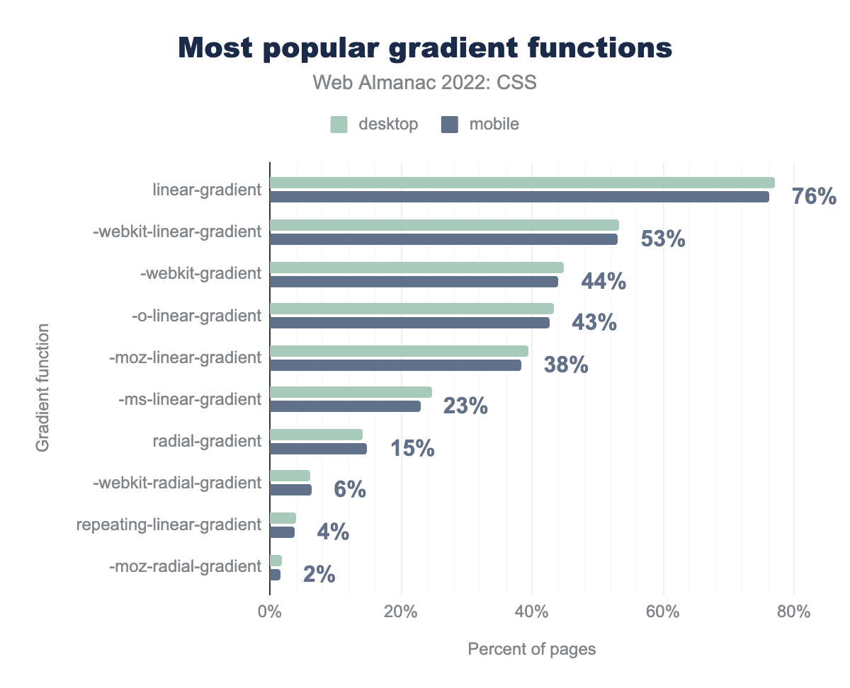 ご想像の通り、もっとも普及しているのは0%から100%までで、次いで50%となっています。開発者は一般的にこれらのストップを10%間隔で設定し、たとえば33%を使っているページはわずか1%です。